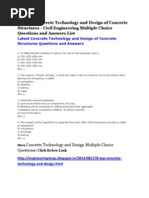 Concrete Technology And Design Multiple Choice Questions Multiple Choice Concrete